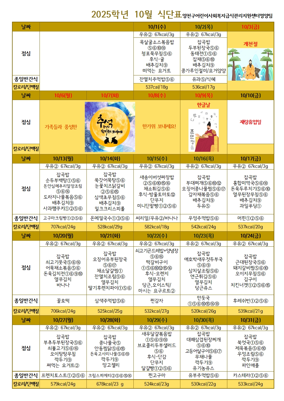 2025년 7월 튼튼유치원 친환경급식 식단표입니다.