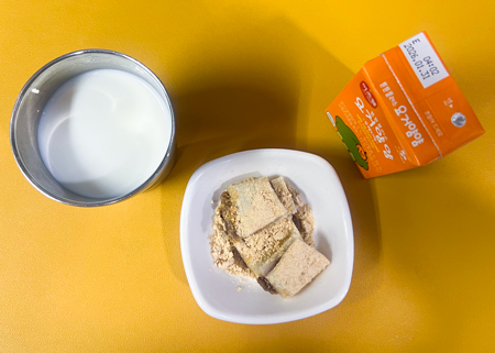 우유② 67kcal/3g, 잡곡밥, 두부된장국⑤⑥, 동태전①⑤⑥, 잡채⑤⑥⑩, 배추김치⑨, 콩가루인절미/요거얌얌 ( 칼로리/단백질 536cal/17g ) ❖ 튼튼 유치원의 급식은 인공조미료를 전혀 사용하지 않고, 멸치, 다시마, 표고버섯, 건새우, 무 등의 천연재료로 맛을