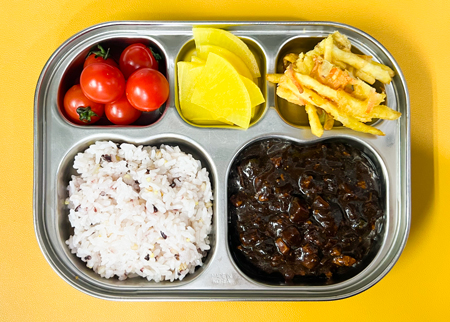 우유② 67kcal/3g, 새송이버섯짜장밥②⑤⑥⑩⑮⑯, 채소튀김⑤⑥, 후식-방울토마토⑫, 단무지, 미니단팥빵①②⑤⑥ ( 칼로리/단백질 582kcal/18g ) ❖ 튼튼 유치원의 급식은 인공조미료를 전혀 사용하지 않고, 멸치, 다시마, 표고버섯, 건새우, 무 등의 천연재료로 맛을 내고