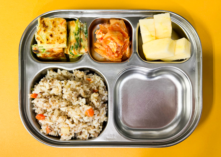 우유② 67kal/3g, 돈육하이라이스덮밥②⑤⑥⑩⑫⑯⑱, 떡갈비구이①⑤⑥⑩⑫⑮⑯, 짜먹는 요거트②, 단무지, 치즈빵①②⑤⑥ ( 칼로리/단백질 574kcal/22g ) ❖ 튼튼 유치원의 급식은 인공조미료를 전혀 사용하지 않고, 멸치, 다시마, 표고버섯, 건새우, 무 등의 천연재료로 맛을