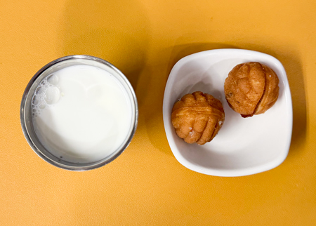 우유② 67kal/3g, 달걀새우채소볶음밥①⑤⑥⑨⑱, 꿀떡⑤, 마시는 요쿠르트②, 깍두기⑨, 꿀호떡①②⑤⑥ (칼로리/단백질 600kcal/16g) ❖ 튼튼 유치원의 급식은 인공조미료를 전혀 사용하지 않고, 멸치, 다시마, 표고버섯, 건새우, 무 등의 천연재료로 맛을 내고 있습니다.