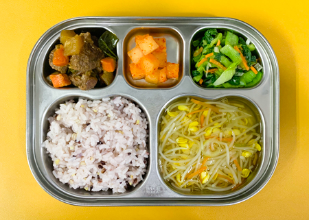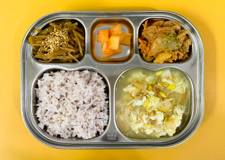 우유② 67kcal/3g, 잡곡밥, 콩나물국⑤, 쇠고기사태찜⑤⑥⑯, 청경채나물⑤⑥, 깍두기⑨, 달걀쿠키 ( 칼로리/단백질 552kcal/28g ) ❖ 튼튼 유치원의 급식은 인공조미료를 전혀 사용하지 않고, 멸치, 다시마, 표고버섯, 건새우, 무 등의 천연재료로 맛을