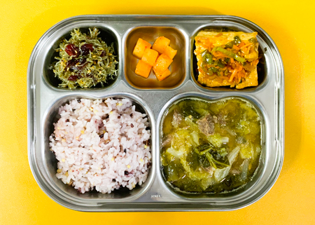 우유② 67kcal/3g, 잡곡밥, 사골우거지된장국⑤⑥⑯, 두부양념찜⑤⑥, 크랜베리멸치볶음⑤, 배추김치⑨, 사과쨈쿠키 ( 칼로리/단백질 635kcal/24g ) ❖ 튼튼 유치원의 급식은 인공조미료를 전혀 사용하지 않고, 멸치, 다시마, 표고버섯, 건새우, 무 등의 천연재료로 맛을