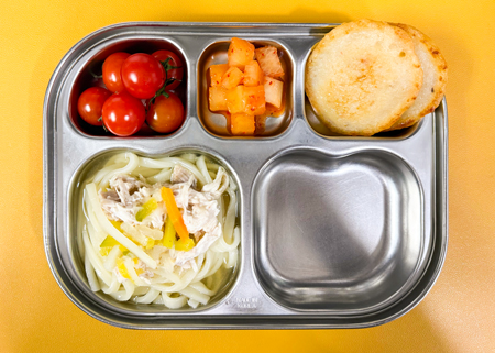 우유② 67kcal/3g, 닭칼국수⑤⑥⑮, 감자전⑤, 후식-(방울)토마토⑫, 깍두기⑨, 바람떡 ( 칼로리/단백질 553kcal/23g ) ❖ 튼튼 유치원의 급식은 인공조미료를 전혀 사용하지 않고, 멸치, 다시마, 표고버섯, 건새우, 무 등의 천연재료로 맛을 내고