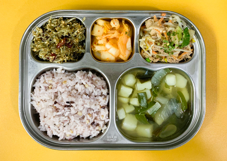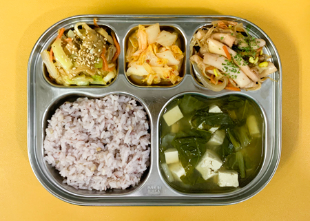 우유② 67kal/3g, 잡곡밥, 배추된장국⑤⑥, 간장오리주물럭⑤⑥⑱, 청포묵무침⑤⑥, 배추김치⑨, 방울토마토⑫ ( 칼로리/단백질 597kcal/21g ) ❖ 튼튼 유치원의 급식은 인공조미료를 전혀 사용하지 않고, 멸치, 다시마, 표고버섯, 건새우, 무 등의 천연재료로 맛을