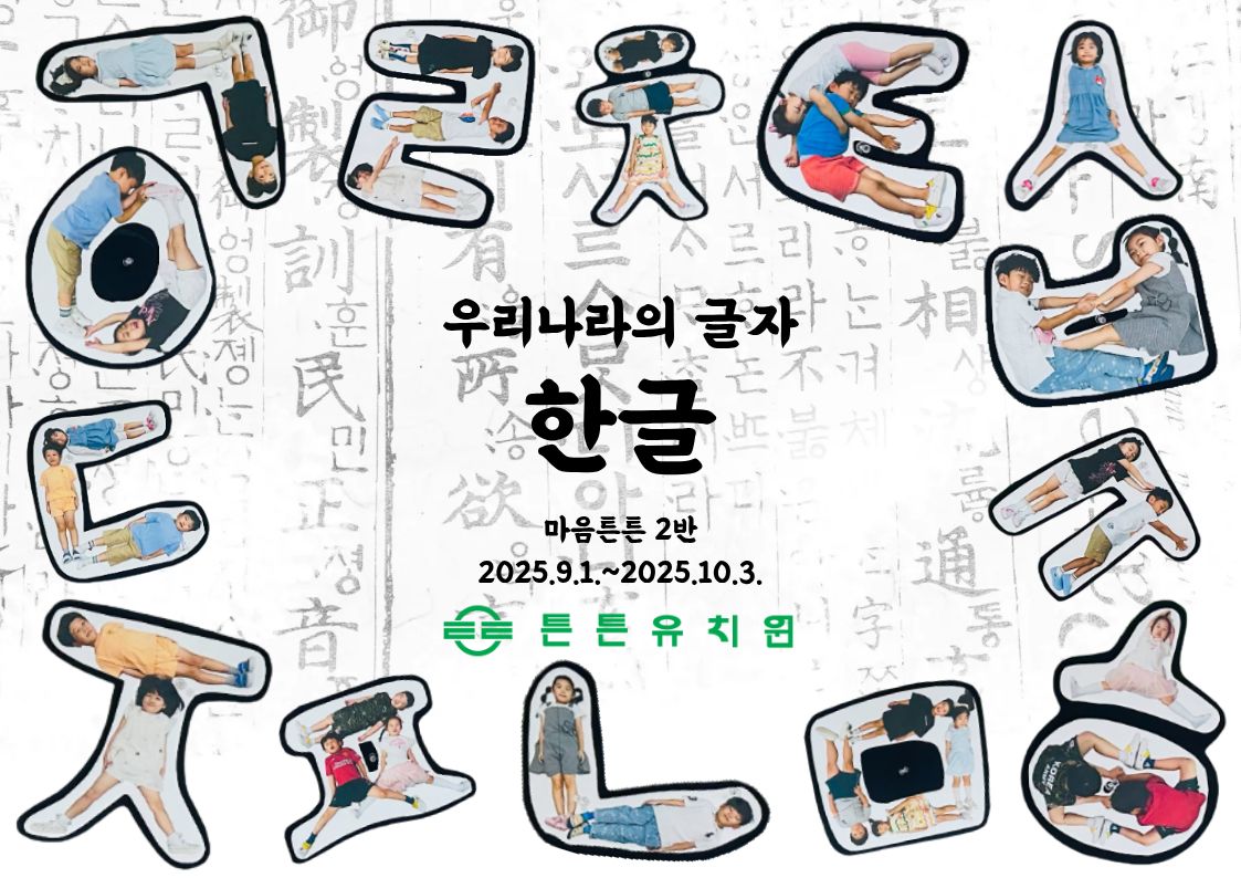 마음튼튼 2반의 저널입니다. 놀이를 통해 한글의 모양과 소리를 다양한 놀이를 통해 탐색하고 표현하며 한글의 즐거움과 아름다움을 경험했습니다. 한글로 생각과 마음을 표현한 동시를 발표하며 한글의 소중함을 느끼는 시간을 가졌습니다.